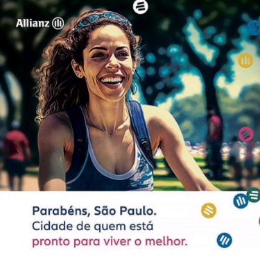 * A seguradora Allianz publicou em alguns jornais do país o material acima, alusivo ao aniversário de 469 anos da cidade de São Paulo. A inovação da campanha é que a sorridente ciclista que aparece na imagem nunca existiu, foi criada por inteligência artificial.